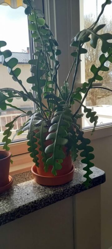 Ric rac-kaktusen har lange, hengende stengler som gjør den perfekt i ampler og hyller. Bladene starter smale og utvikler etter hvert de karakteristiske avrundede “bølgene” som gir planten sitt lekne uttrykk.