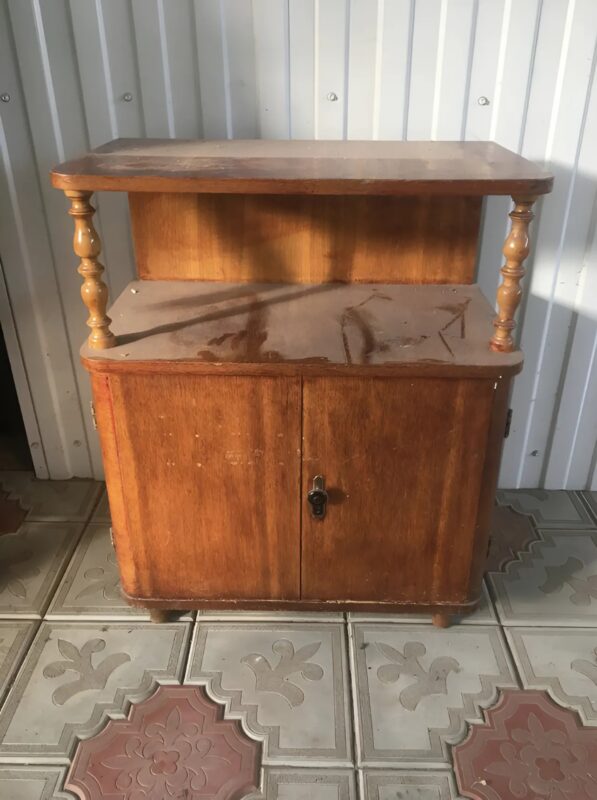Da hun hentet den frem, var treverket misfarget, og lakken flasset. Likevel så hun potensialet – med litt tålmodighet og maling kunne dette bli et blikkfang i hjemmet.