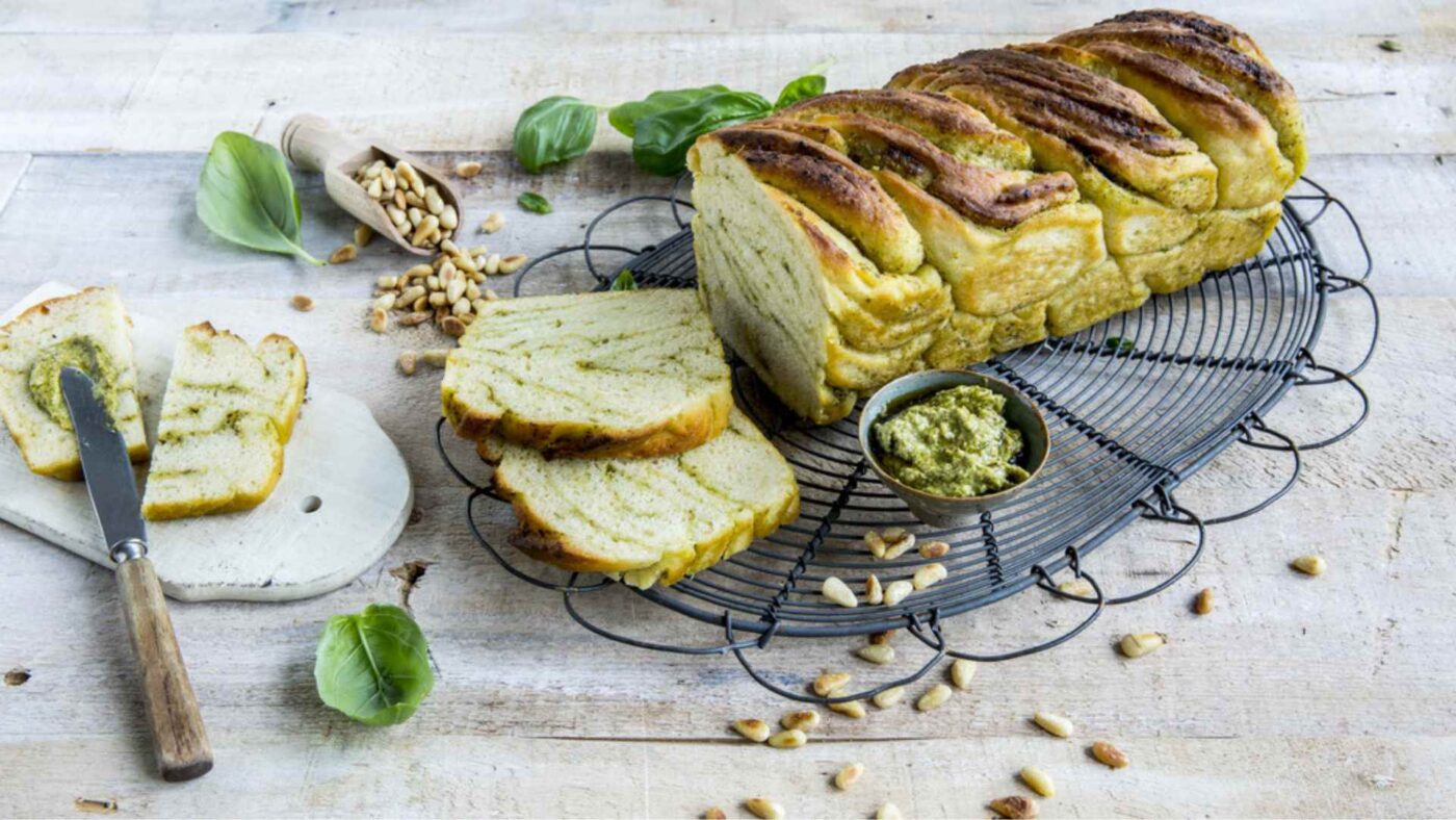 Dette pestobrødet er ikke bare nydelig å se på, det er også helt glutenfritt og utrolig smakfullt. Perfekt som tilbehør til supper og salater, eller som et dekorativt og velsmakende innslag på tapasbordet. Denne oppskriften er etter inspirasjon fra matprat.