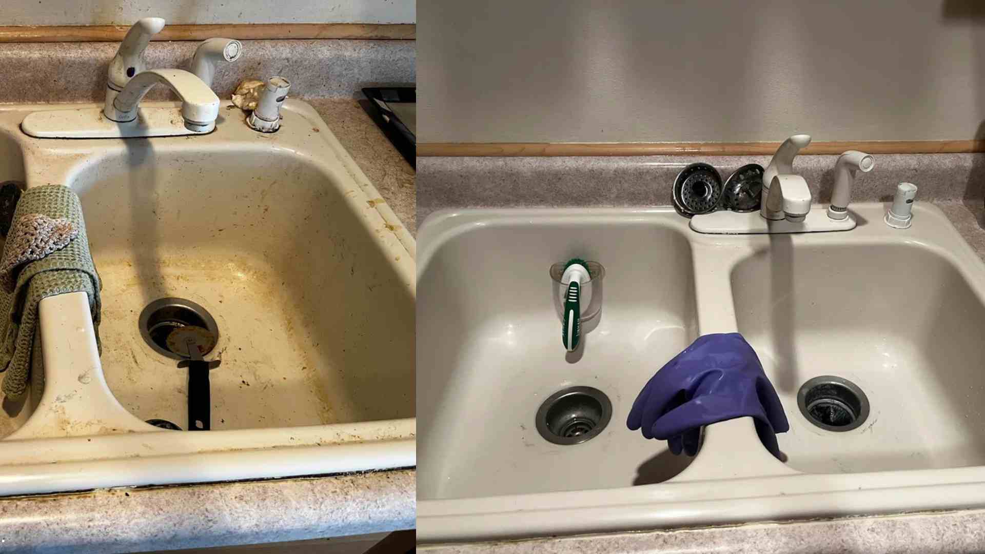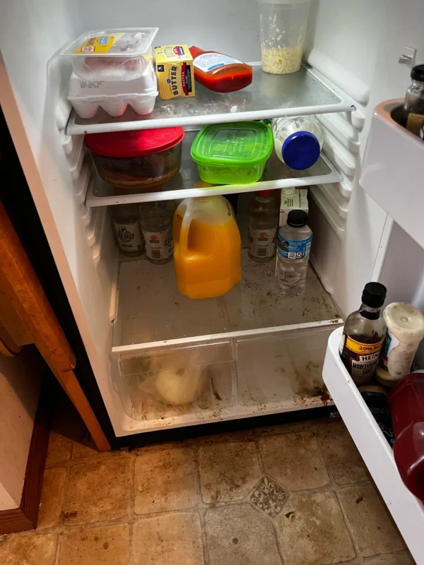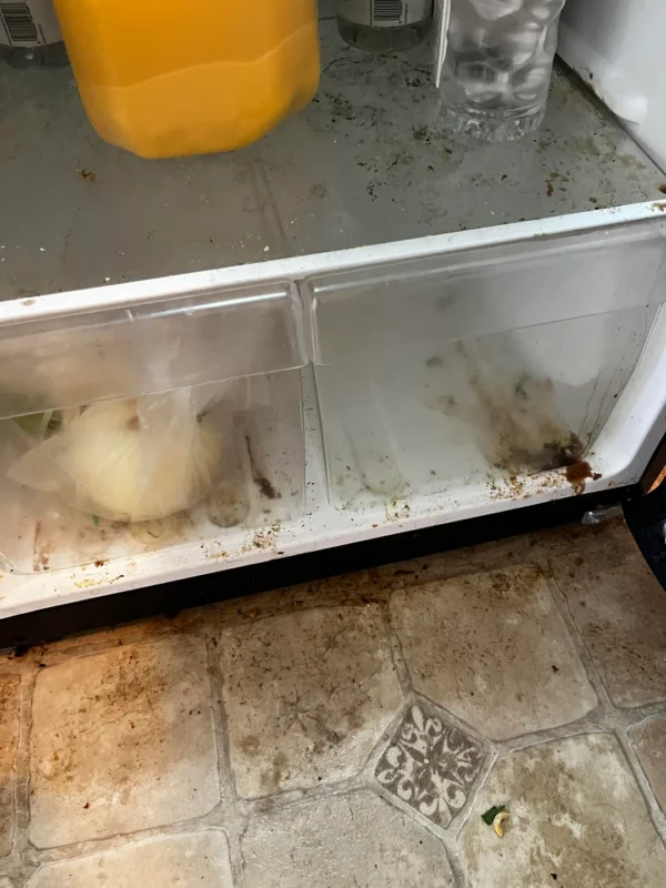Bildene som følger med, sier egentlig alt. Før: et kjøleskap med skitne skuffer, flekker og fastgrodd søl, en vask og benk med tydelige spor av at ting har hopet seg opp over tid, og et gulv som avslører at overskuddet har vært fraværende lenge. Etter: samme kjøkken, men nå ser det plutselig ut som et rom man kan puste i igjen. Ren benk, ryddigere kjøleskap, og en vask som faktisk ser ut som en vask.