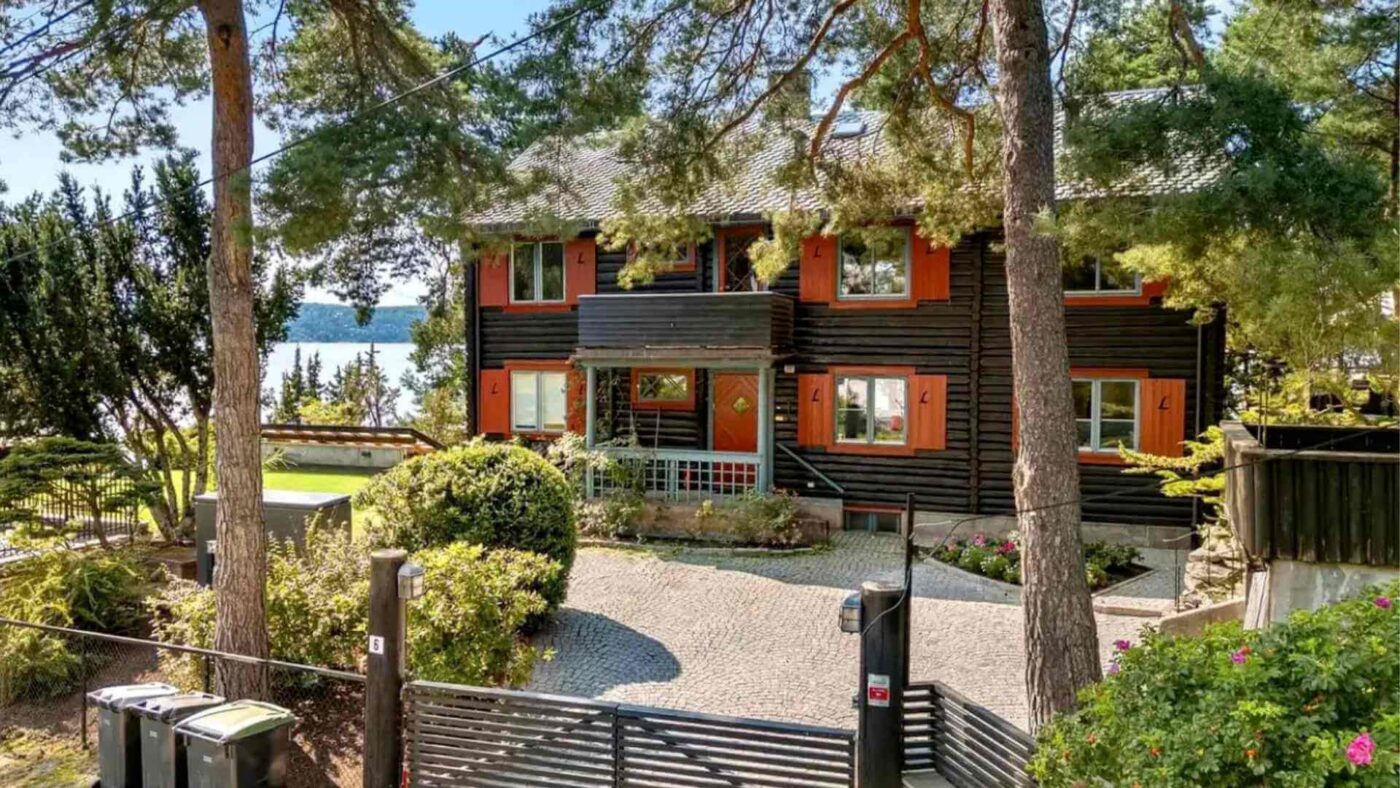 Hovedhuset rommer fire soverom, flere stuer og et lyst kjøkken med utsikt mot fjorden. Den store hagen skråner ned mot sjøen, og danner en naturlig overgang mellom ute og inne – et element paret verdsetter høyt.