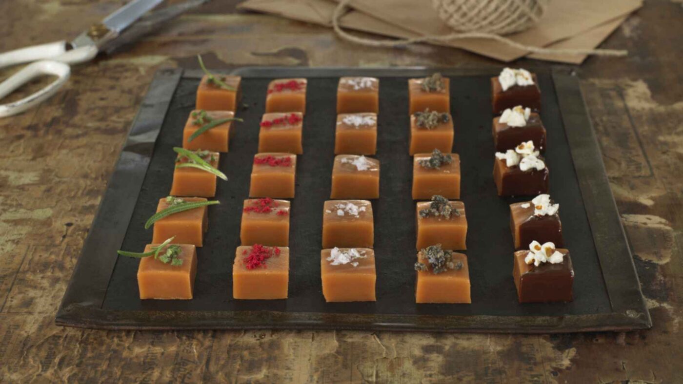 Når karamellen er fast, vipp den ut av formen og skjær i passende biter med en skarp kniv. Hvis karamellen er litt hard, la den stå i romtemperatur i noen minutter før du skjærer.