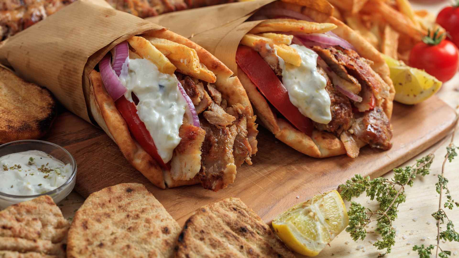 Lengter du tilbake til greske feriedager med sol, varme og fantastisk mat? Da bør du prøve denne oppskriften på hjemmelaget gyros! Møre kjøttstrimler marinert med urter og hvitløk, servert i varme pitabrød med sprø pommes frites, kremet tzatziki og friske grønnsaker – akkurat slik de serverer det i Hellas. Denne oppskriften er etter inspirasjon fra matprat.
