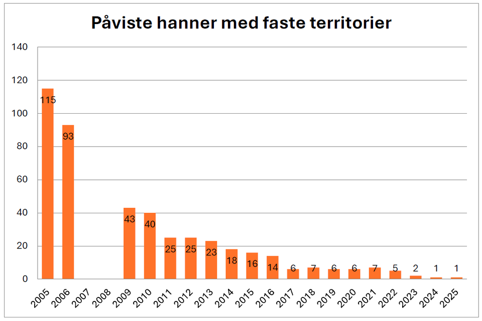 Figurer fra Statsforvalteren viser en dramatisk nedgang i territorielle hortulanhanner fra 2005 til 2025. Det som en gang var stabile bestander i Hedmark, er nå redusert til nesten ingenting.