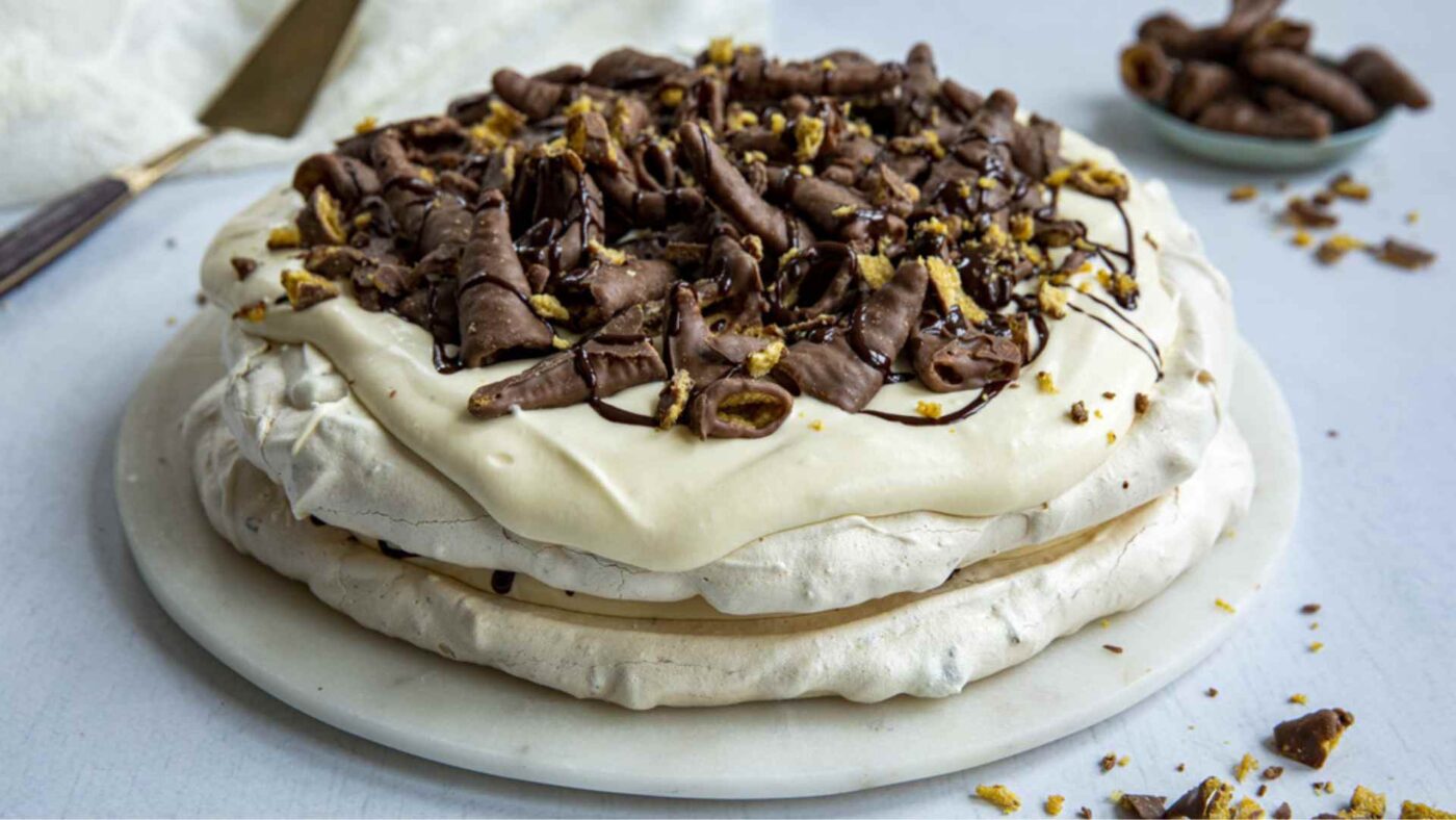 Smashkaken er en slags luksuriøs dobbelt-Pavlova, men med den geniale idéen å blande inn det folk flest elsker å småspise på lørdagskvelden: Smash. Den er overraskende enkel å lage, men krever litt planlegging – og du må vente med å montere den til rett før servering for å beholde marengsbunnen sprø og perfekt. Denne oppskriften er inspirert av matprat.